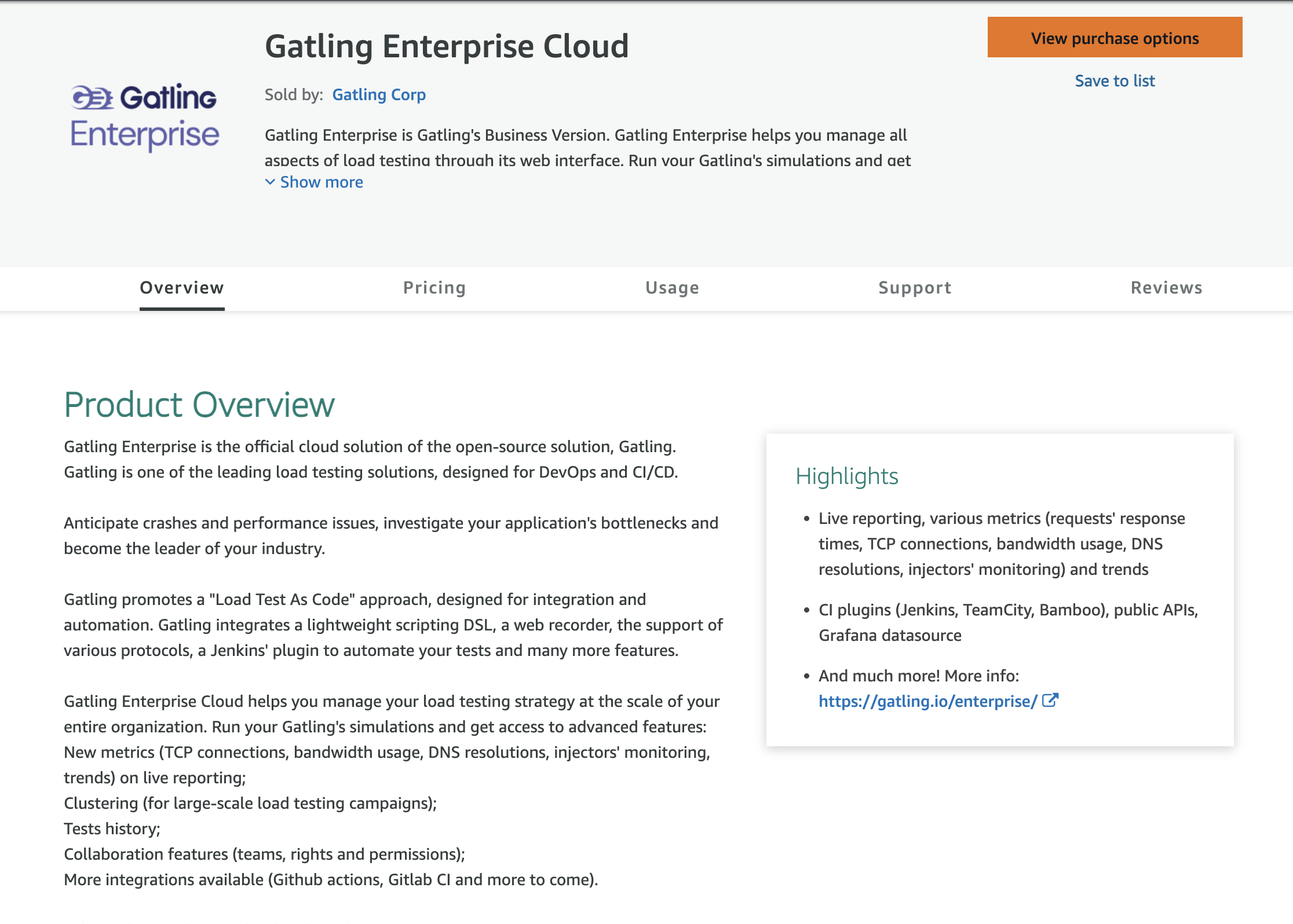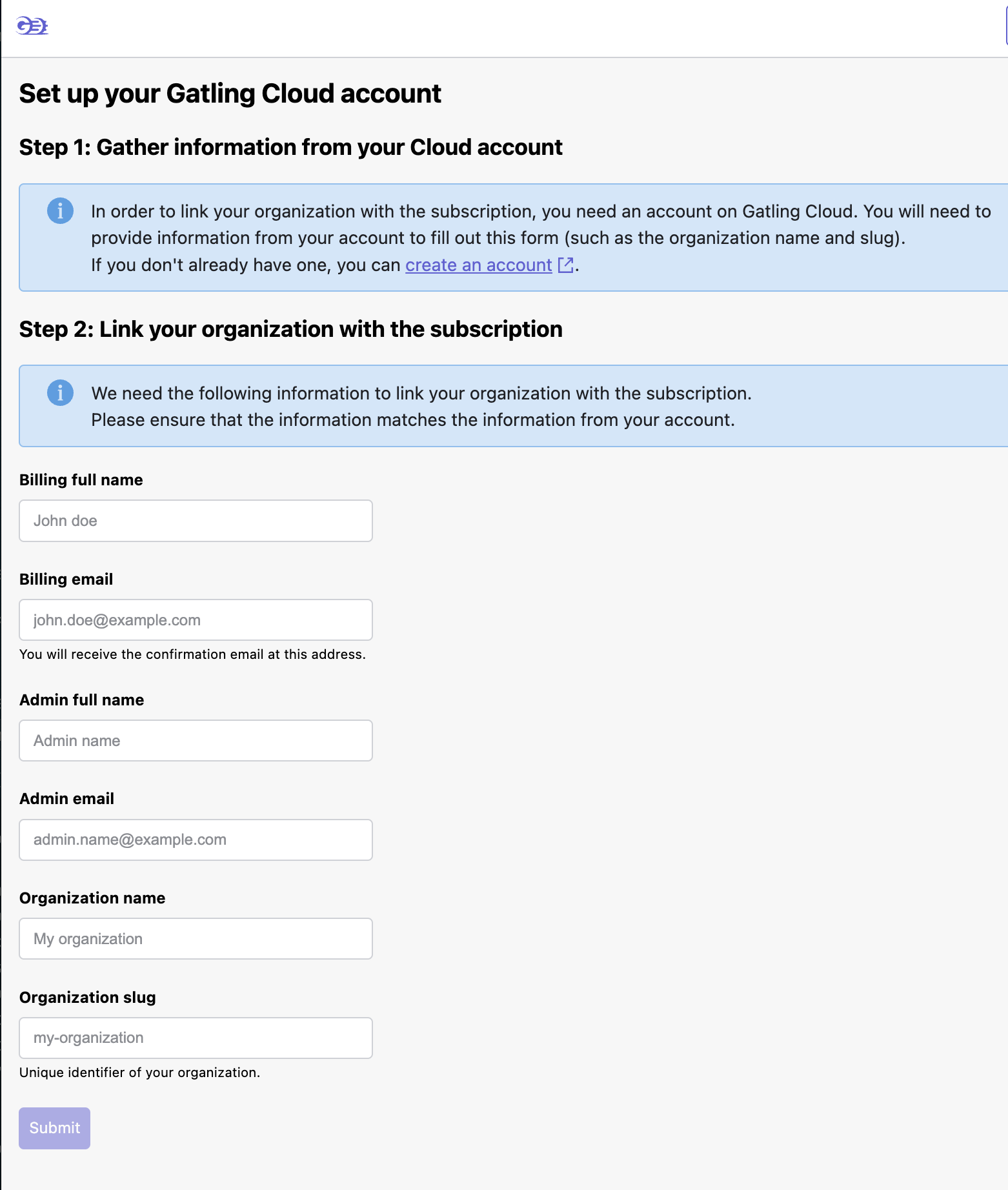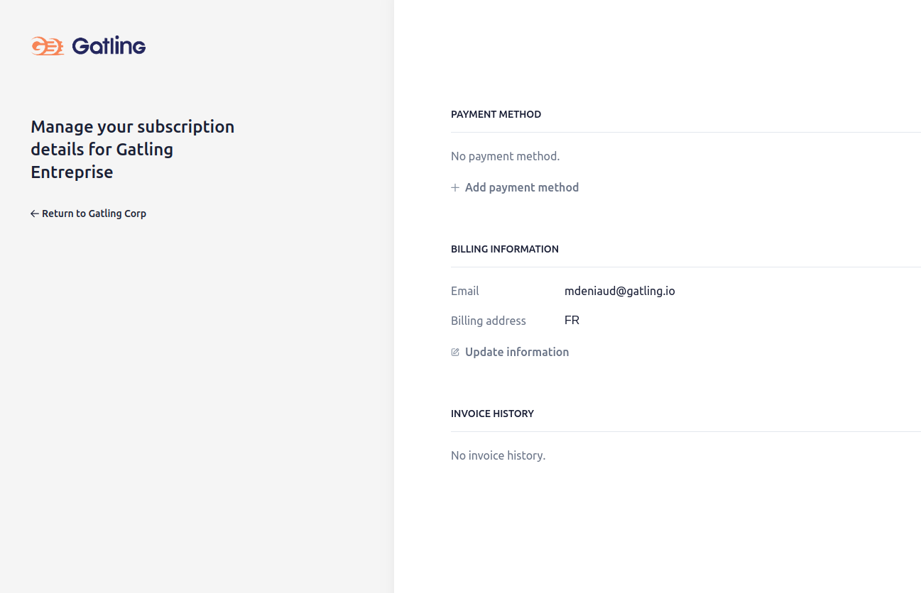 This page shows all available offers for your organization. You can choose the number of credits for your offer. A credit represents a minute of usage of one Gatling load generator.