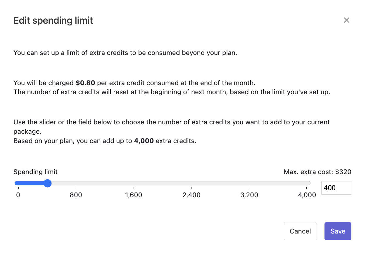 And you don’t want to wait the next filling of credit, you can activate extra credits by clicking button Edit spending limit