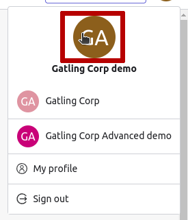 - Avatar - Composed by default from the two first characters of your Organization name.