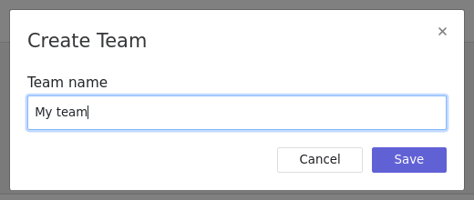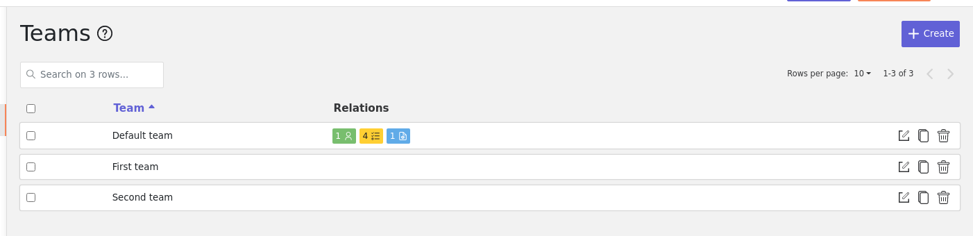 To create a team, click on the Create button.