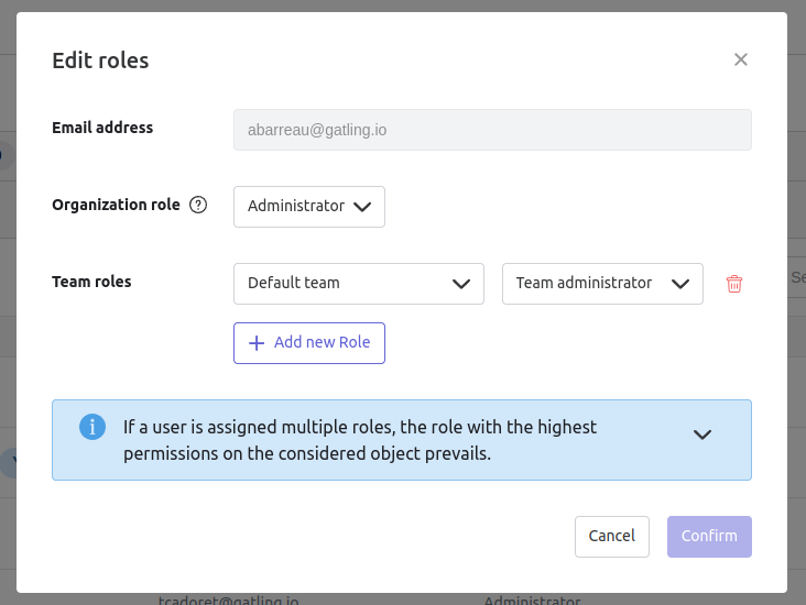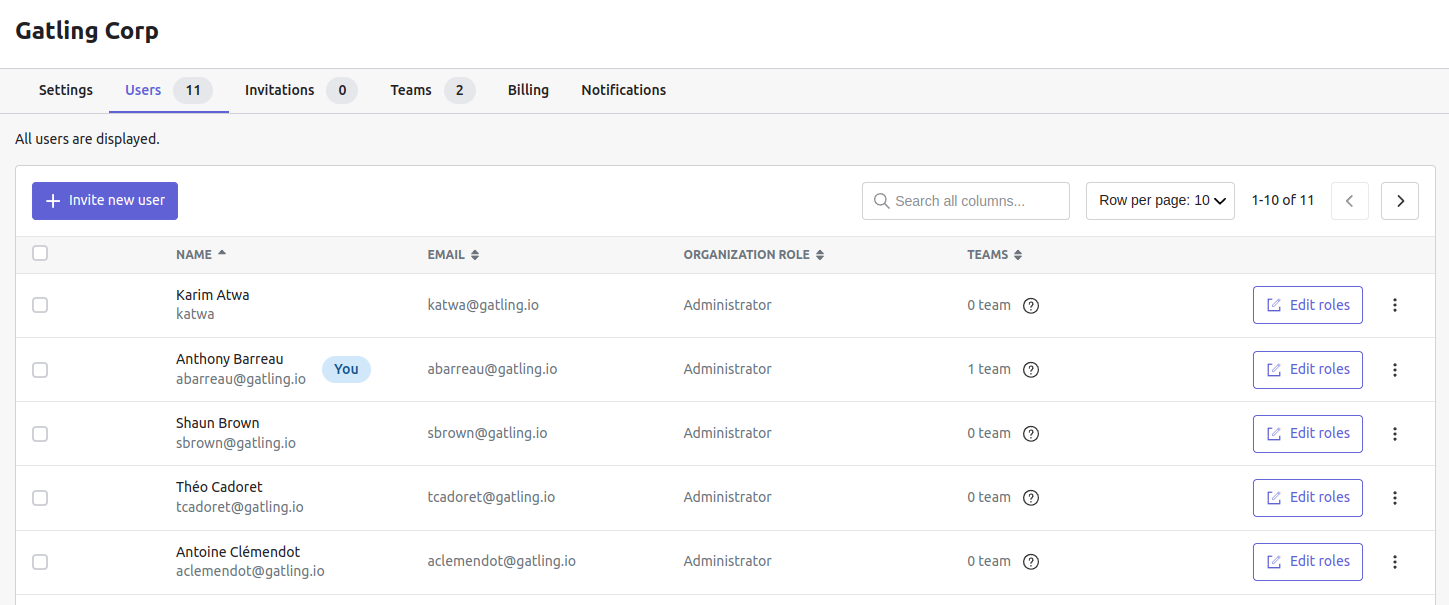 If you are an administrator, you can edit the roles of each user using the Edit roles button: