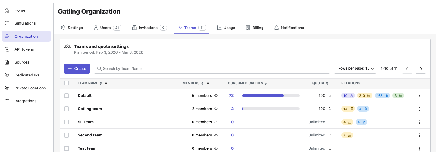 View the teams in your Gatling Enterprise Edition organization.